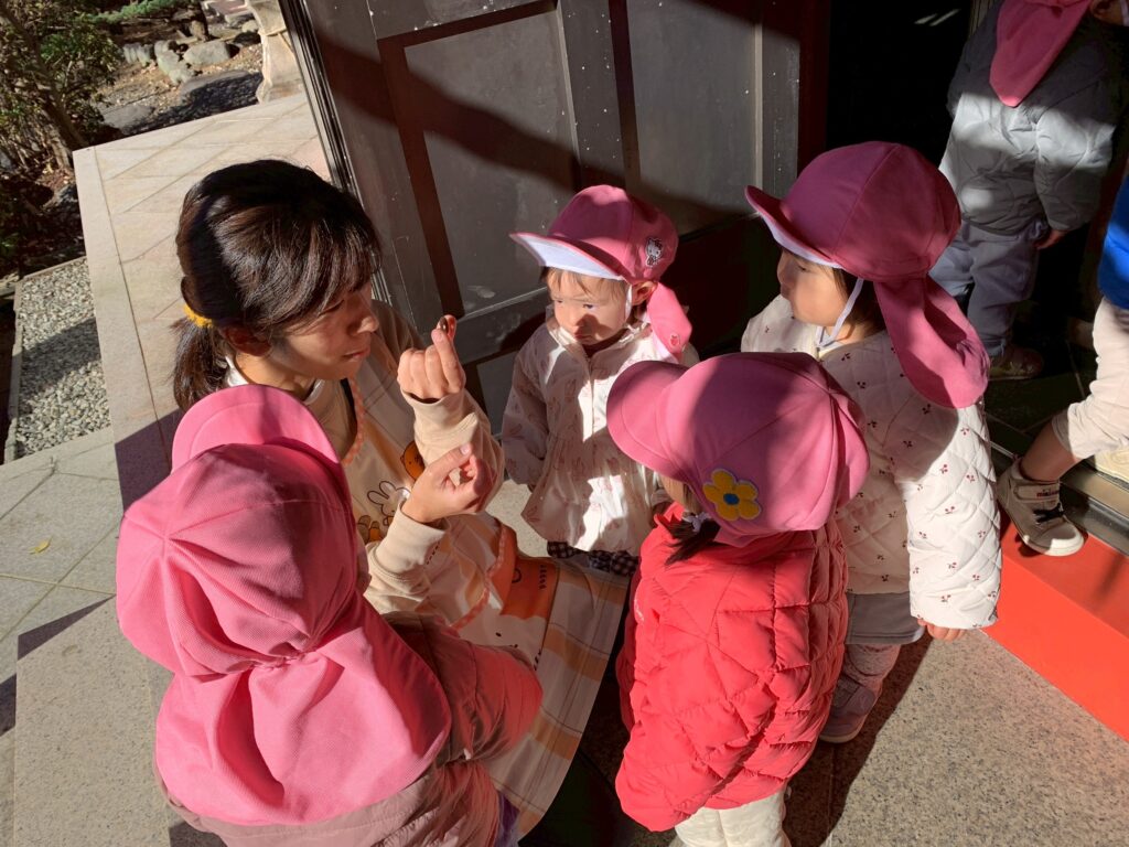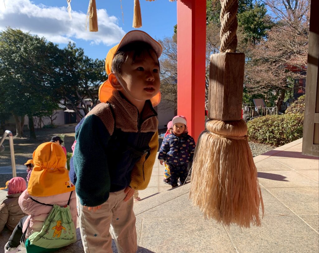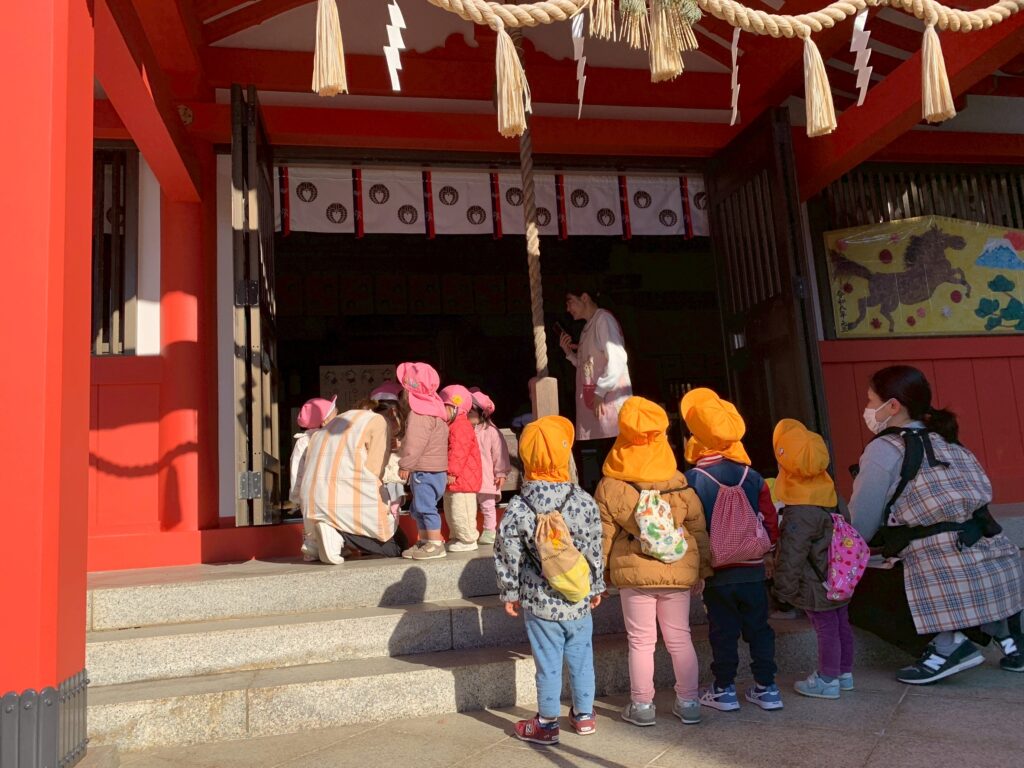 帰り際は保育者の動きを真似て、鳥居をくぐったあとに一礼する子どもたちでしたよ😊